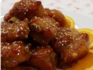 現炸排骨肉加上獨門配方橙汁醬